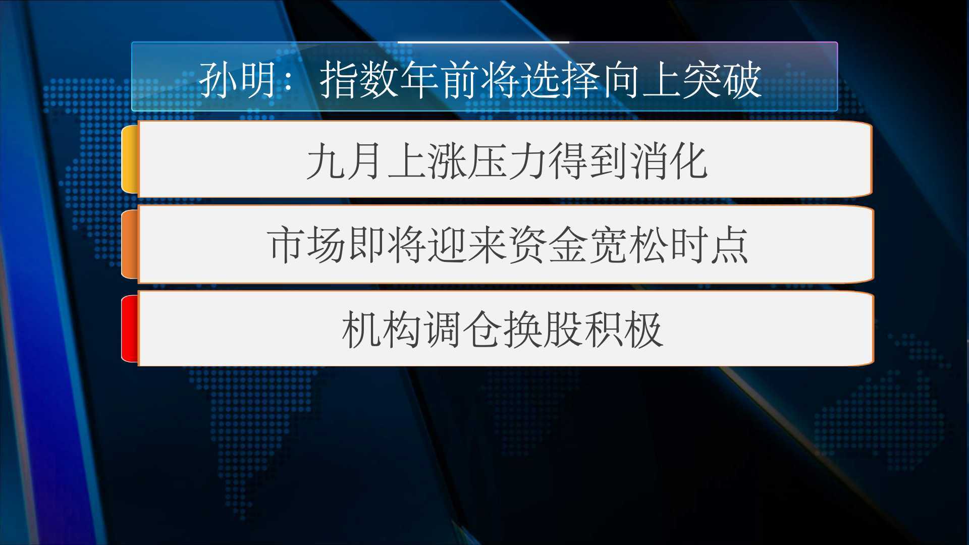 现场嘉宾孙明认为指数年前将选择向上突破