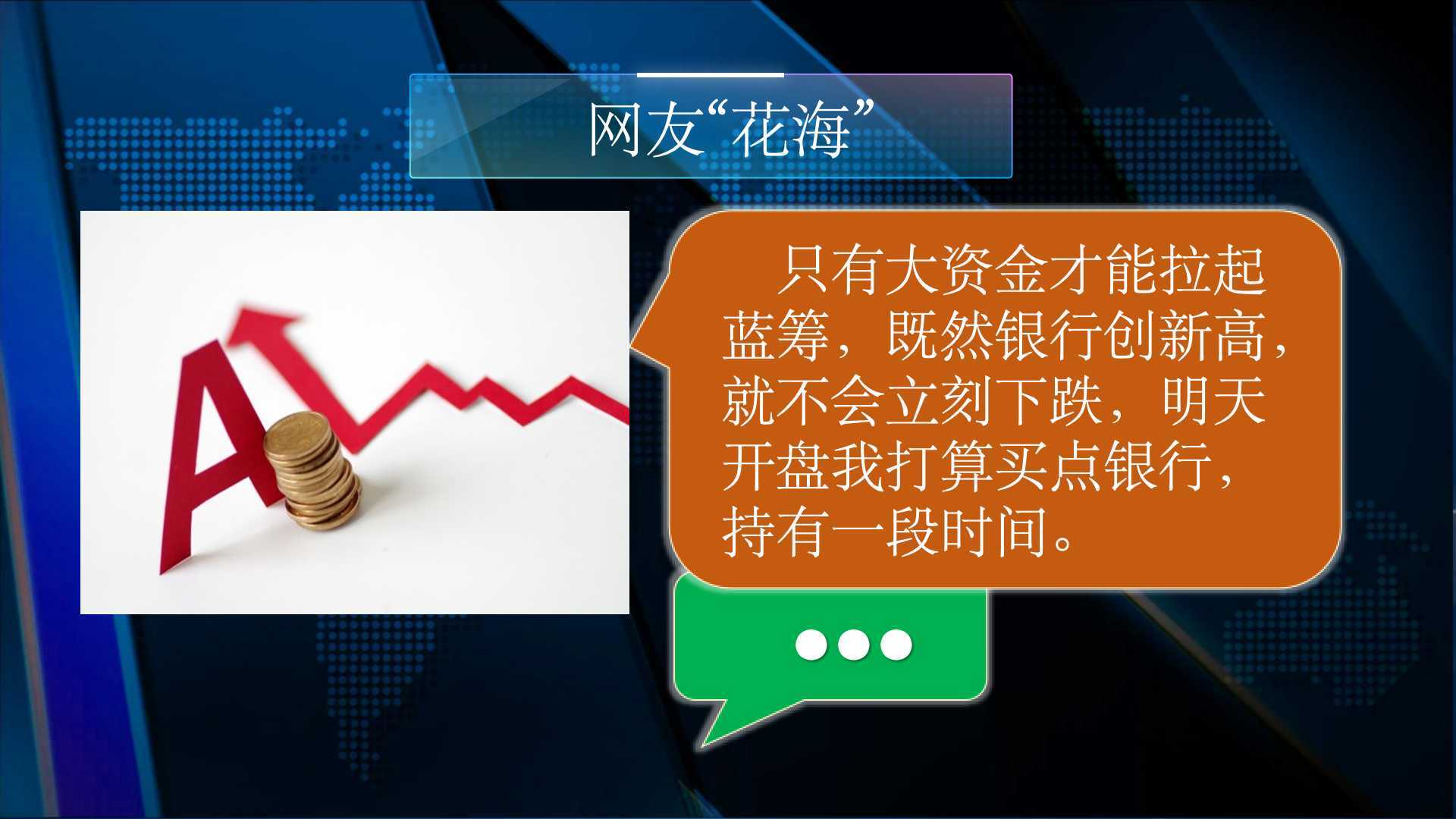 网友“花海”:只有大资金才能拉起蓝筹,既然银行创新高,就不会立刻下跌,明天开盘我打算买点银行,持有一段时间。