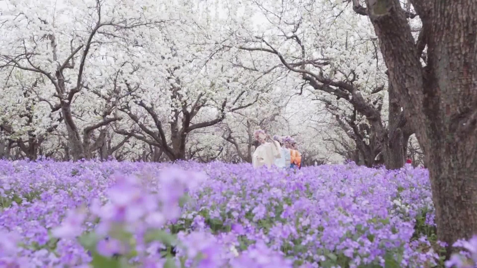 近日,江苏宿迁三台山国家森林公园内,500亩梨花与二月兰竞相绽放。满枝梨花洁白如雪,紫色的二月兰摇曳生姿,吸引众多游客前来踏青赏花。据了解,目前景区采取“朝五晚九”营业时间,满足游客赏花需求。