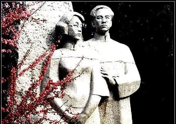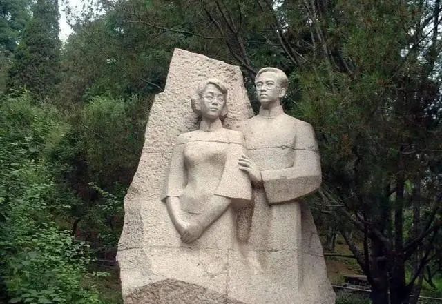 在北京陶然亭公园里,有一对男女拥肩而立的青石雕像,是五四时期进步青年的装扮,不远处并排立着刻着他们名字的石碑,看上去像一对恋人。