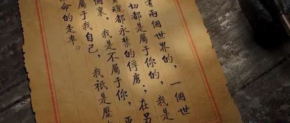 “我是有两个世界的:一个世界一切都是属于你的,我是连灵魂都永禁的俘虏;在另一个世界里,我是不属于你,更不属于我自己,我只是历史使命中的走卒……所以我决定:你的所愿,我将赴汤蹈火以求之,你的不愿,我将赴汤蹈火以阻之。不能这样,我怎能说是爱你!”