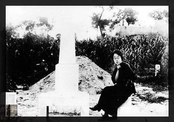 石评梅在高君宇墓碑旁