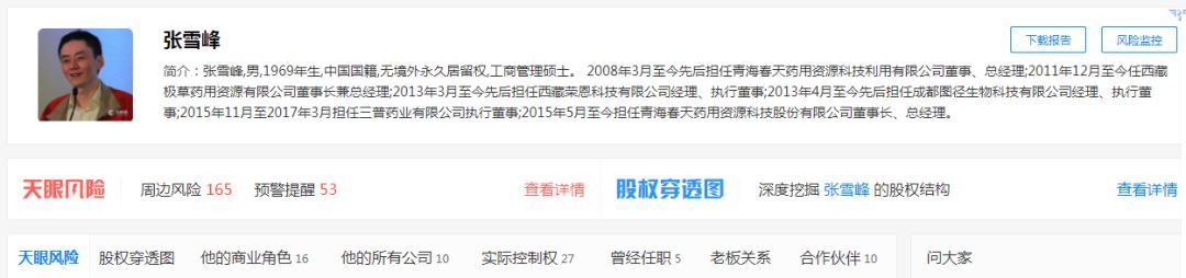 公开履历显示,2004年8月至2013年10月先后担任青海春天药用资源科技利用有限公司董事长、总经理,现为青海春天药用资源科技利用有限公司董事。