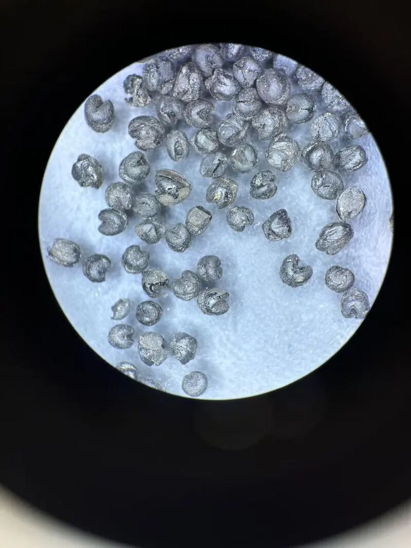 显微镜下的琉璃河遗址出土的“粟”标本与新鲜粟/记者拍摄