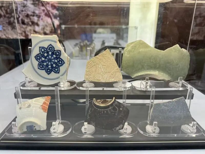 “指尖考古局”互动体验活动区展示的文物遗迹、遗存/记者拍摄