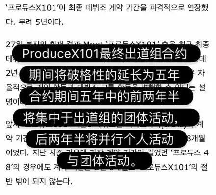 而这一次《Produce404》的组合合约也发生了不小的变化,合约总共为期五年,前两年半为团体活动,后两年半团体与个人活动并行。相比起国内NINE PERCENT的一年半组合时间与火箭少女的两年,这次韩国组合合约比国内长了2、3倍还多。可以说是唯粉的噩梦,团粉的天堂了。
