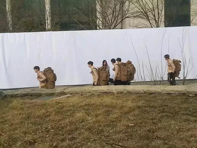 宿舍如此“寒酸”,时尚感爆棚的小哥哥们也仿佛变了个身。路透中的大家统一服装,背着一个半人高的土黄色背包,就差一位教官来个:“跑步,走!”就可以绕着山开始拉练了。