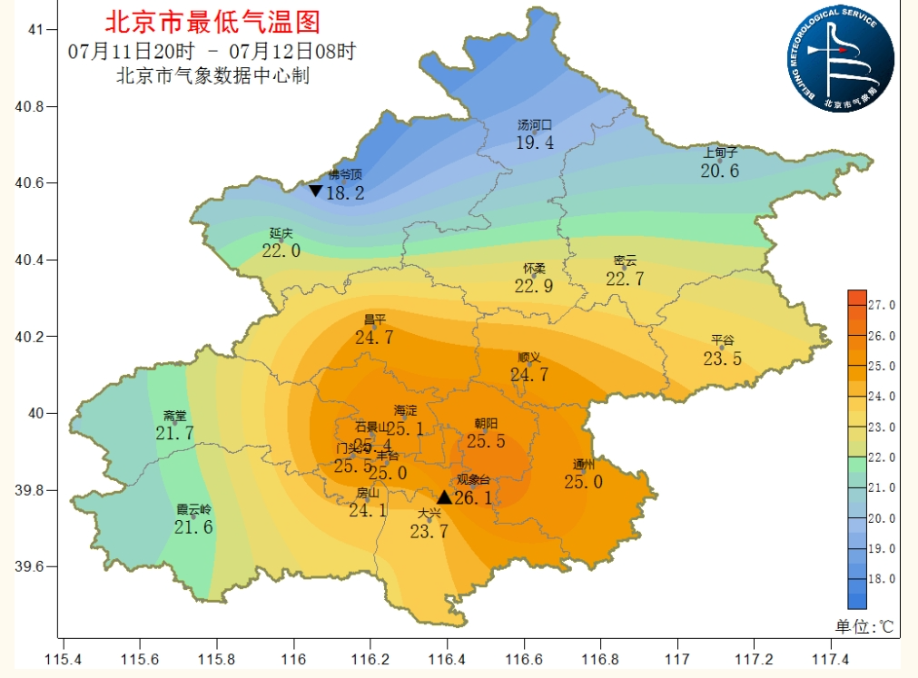 早晨南郊观象台最低气温为26.1℃(4:39),依稀残存着夜间的微凉。