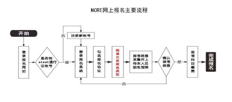 NCRE采取网上报名,报名考务费每科目75元。北京考生登录全国计算机等级考试报名网站(网址:https://ncre-bm.neea.cn),点击“(11)北京市”报名入口进行网上报名。考生登录报名网站后,须认真阅读“省通告:北京市NCRE报名须知”等公告,知悉并遵照相关要求,按照网页提示完成信息填写、照片上传和缴费。