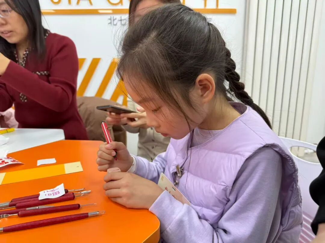 活动尾声,充满仪式感的“齐家共议”印章雕刻手工环节温馨开启。青少年们亲手制作纪念印章与冰箱贴,将“参与、共建、共享”的理念深深融入作品之中。这不仅是活动的美好纪念,更让社区共建的种子在孩子们心中生根发芽。