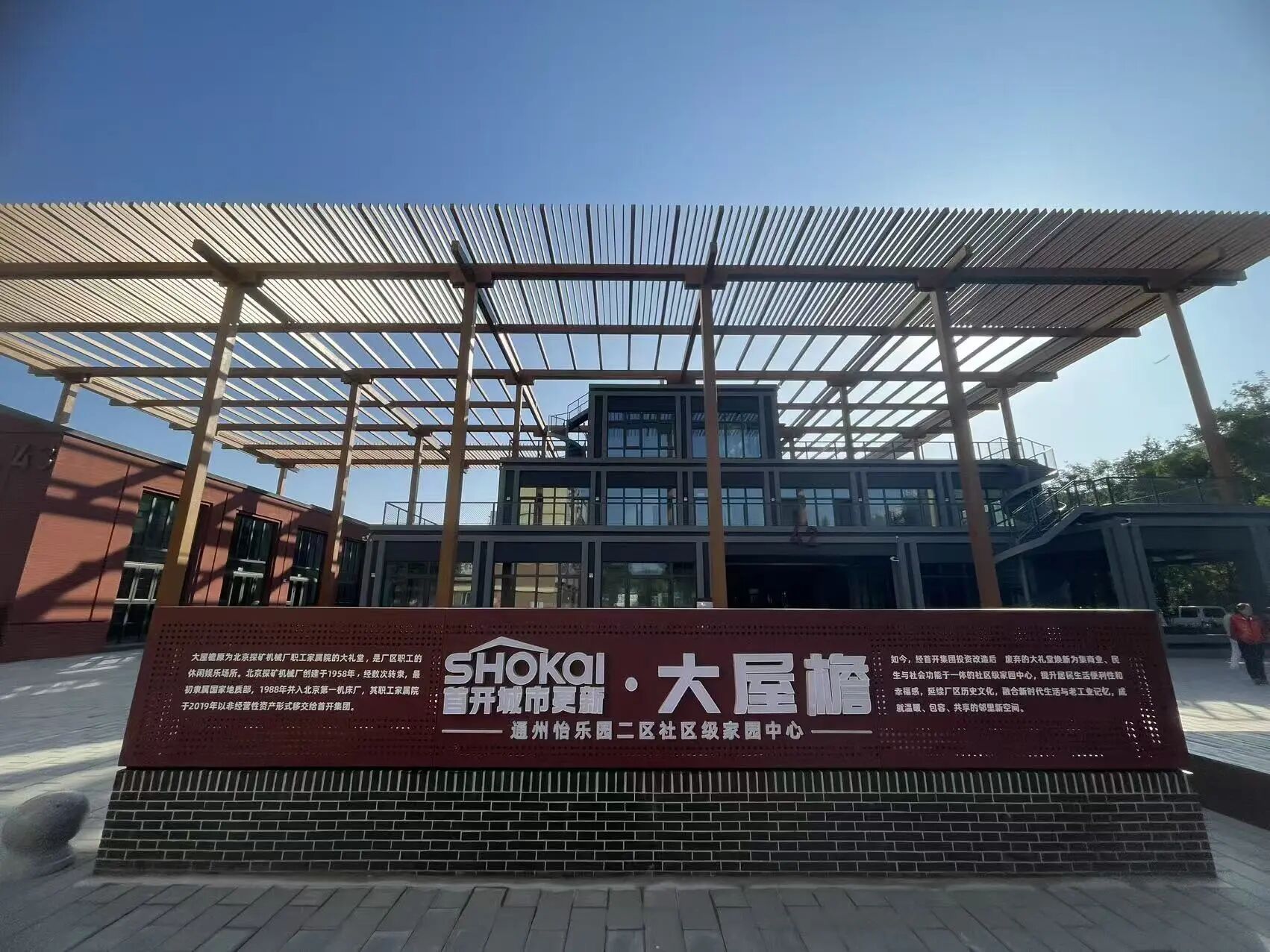 2023年,首开集团决定对这项非经营性资产启动更新改造。大屋檐也成为了通州区第一个原址重建的家园中心。在保留原有建筑轮廓与红砖立面风貌的基础上,项目为社区增加了公共活动空间。首开集团怡乐园家园中心项目负责人李玉晓说: