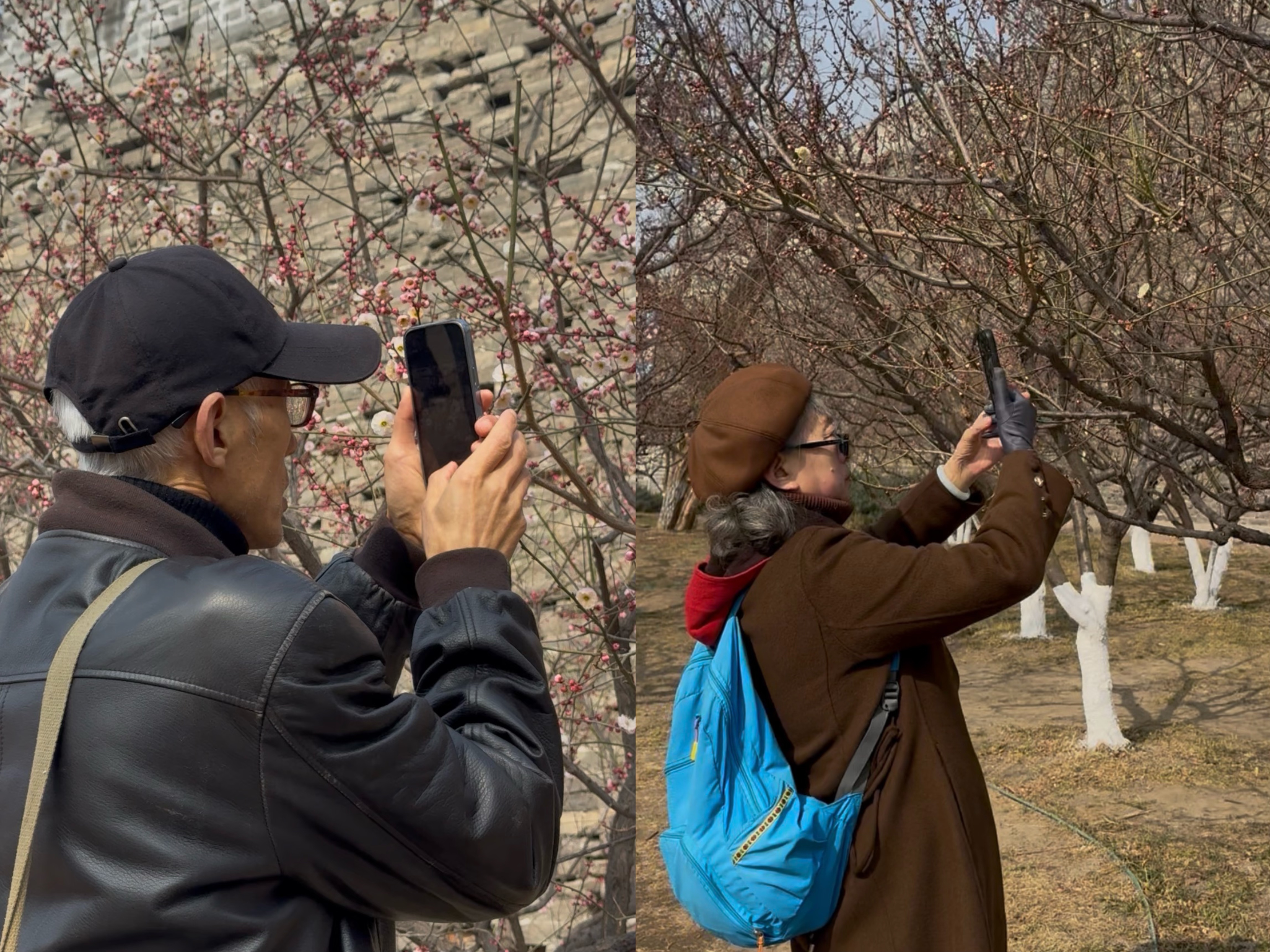 杜阿姨:梅花它比较独特,有明城墙的历史做背景就不一样。其实中山公园、梅园的梅花都开得不错,也挺好的。