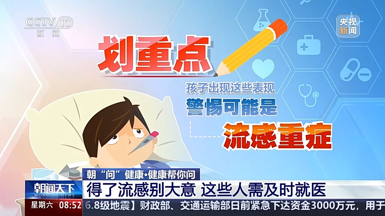 北京市呼吸疾病研究所所长、首都医科大学附属北京朝阳医院副院长 童朝晖:比方说你是年龄比较大的,有基础疾病,比如呼吸道疾病,心脑血管疾病,甚至有用比方说肿瘤化疗一些免疫抑制剂这一类的人群,因为本身就免疫功能低下,再招上一个流感,它就很容易让你免疫功能更受到攻击,然后表现为高热,然后一些症状也出来了,甚至于像这些人还容易并发肺炎。12岁之前的小孩免疫功能不健全,没有建立起来,这些孩子一旦流感得上,进展很快,高热,然后表现得很急。所以像这两类人群可能要及时到医院就诊,否则的话一旦耽误了,可能后期就不太好治。