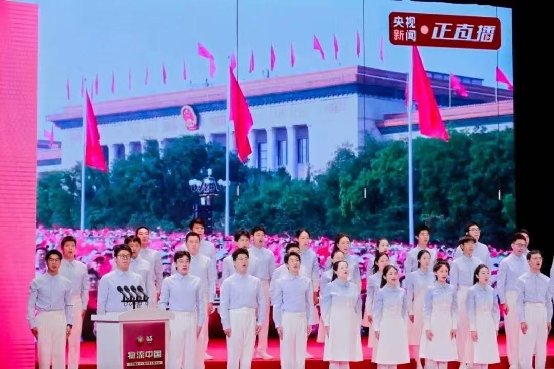大会举行了庄严的天安门国旗展示仪式。这面具有特殊意义的国旗,曾于北京物资学院建校45周年纪念日在天安门广场冉冉升起,此刻由护旗手迈着铿锵有力的步伐护卫入场。全场师生肃立致敬,高唱国歌,雄壮的旋律中涌动着深厚的爱国情怀与强烈的使命担当,现场气氛庄重而热烈。