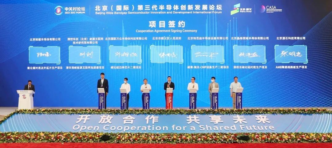 2023中关村论坛北京(国际)第三代半导体创新发展论坛上,顺义区政府与6个项目企业举行签约仪式。