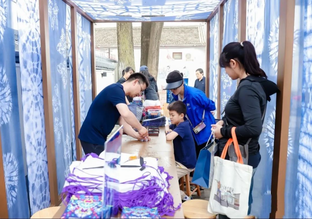 深山集市乡村首店前,身着贵州民族服饰的艺术家们现场表演民族曲目,展示民宿刺绣手工艺。各色体验店里,游客们争相体验特色非遗手工艺。中国邮政柳沟主题邮局前,端午亲子包粽子体验赛热闹非凡。邮局内,各色文创产品琳琅满目。豆腐工坊里,游客们亲手制作豆腐,收获“端午安康”的满满祝福;商街广场的传统游戏区,投壶、糖画、果汁DIY等也吸引众多游客参与。
