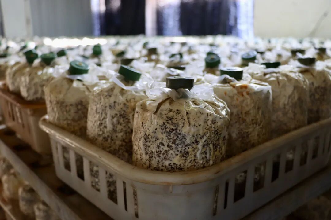 一排排扩繁菌种整齐排列长势喜人