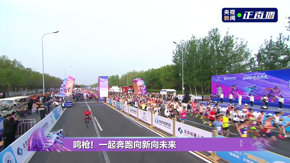 4月19日7:30.2026人形机器人半程马拉松赛在北京亦庄鸣枪开跑。