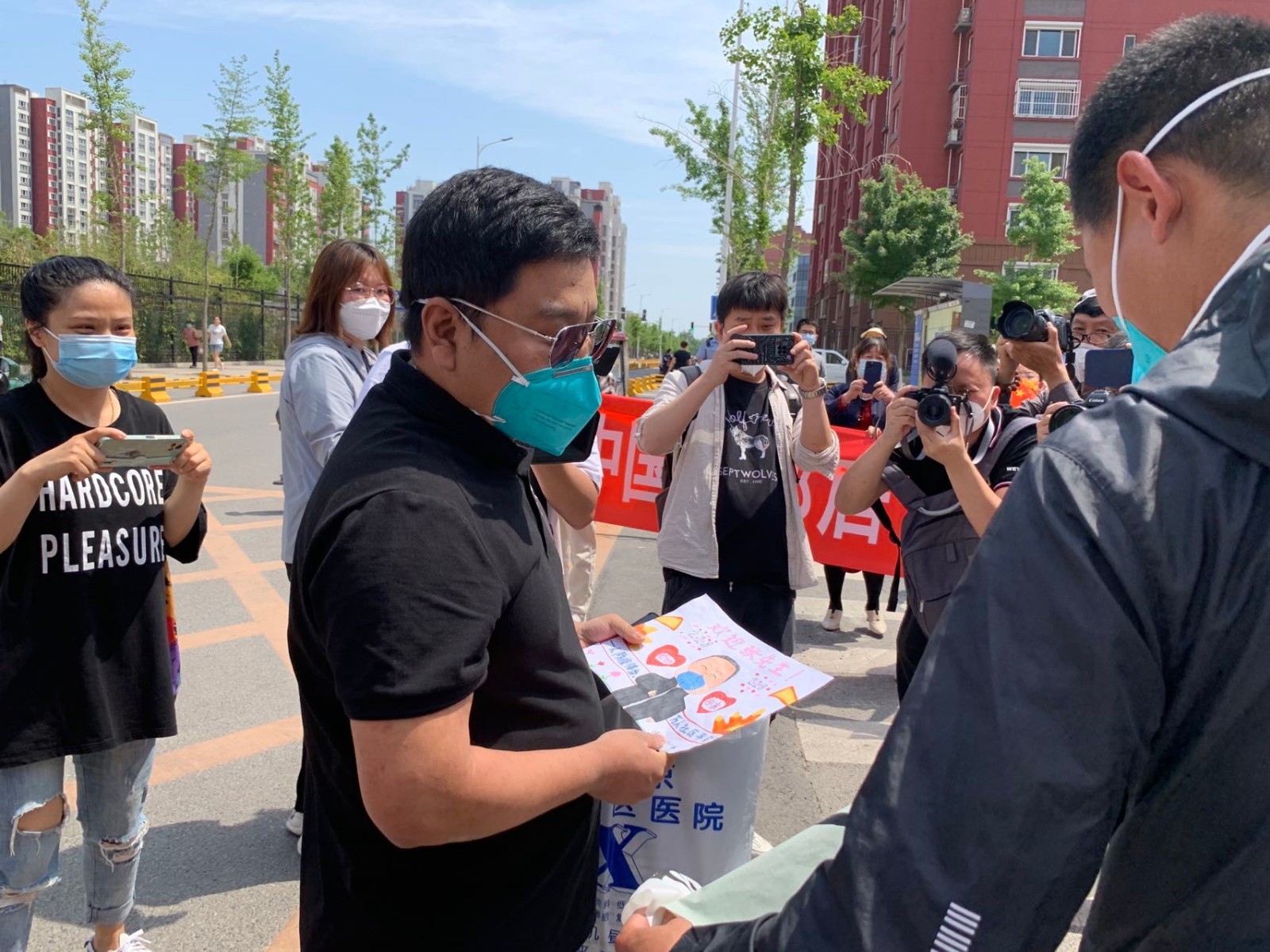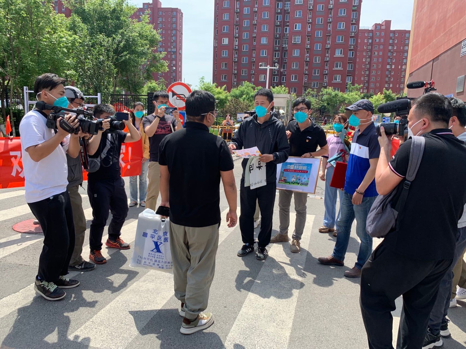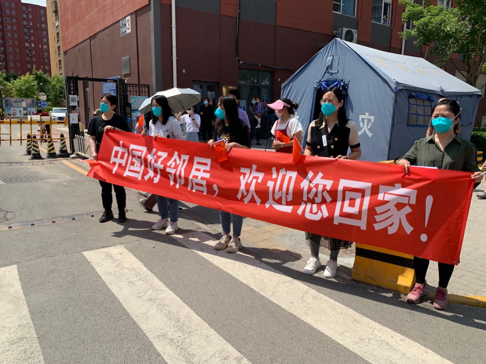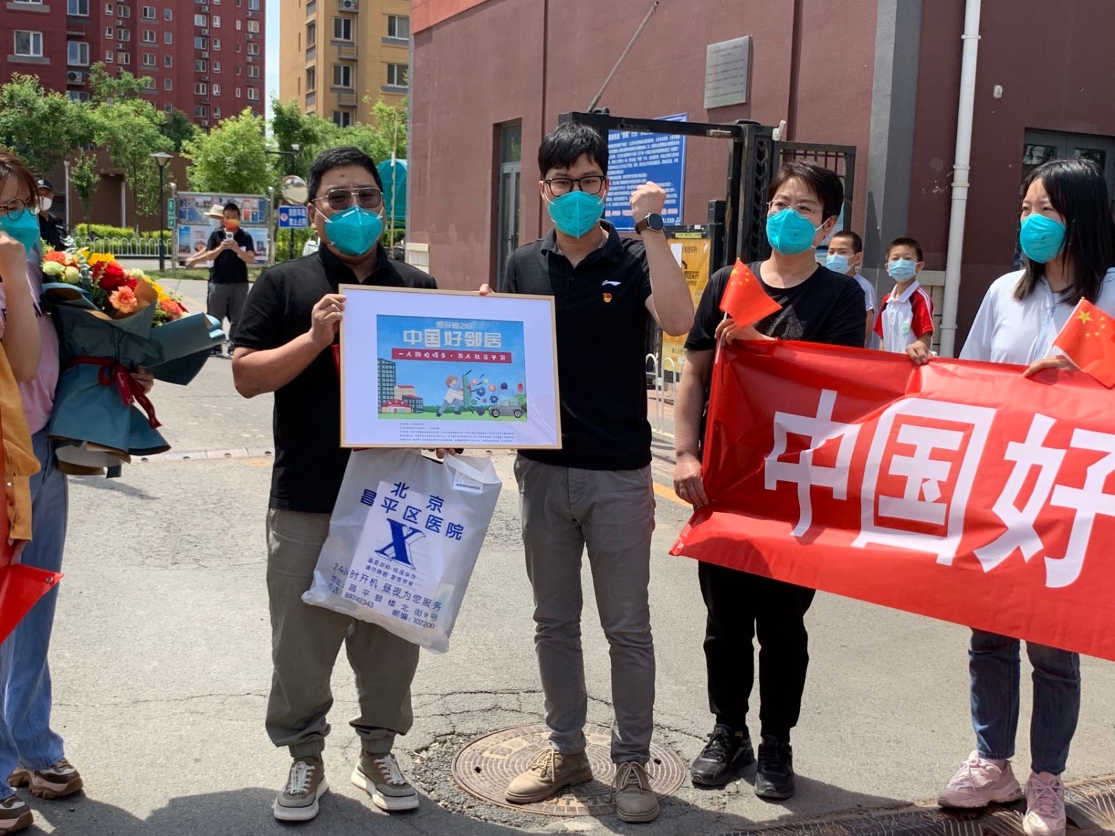 经过14天住院治疗和7天集中隔离观察,被称为“中国好邻居”的218张先生今天回家。在他所居住的昌平冠华苑社区,居民们自发组织起来,欢迎他的归来。