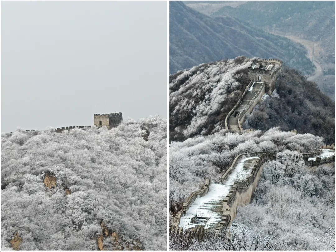 今天(3月2日)清晨,八达岭古长城迎来了绝美雾凇奇观,宛如一幅绝美的水墨画卷。晶莹剔透的冰凌挂满枝头,与古老的城墙交相辉映,为古长城增添了一份别样的冬日韵味。