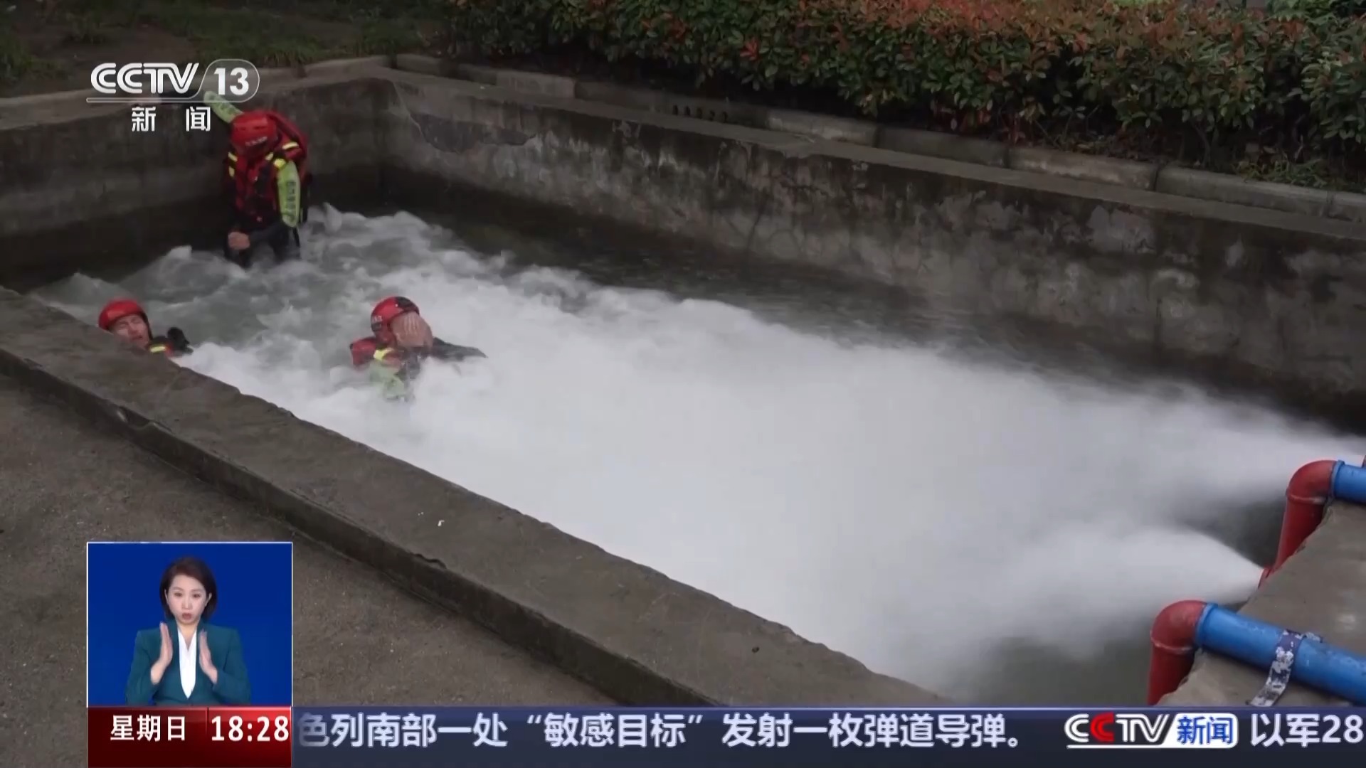 如果山洪水流倾泻而下,人员的逃生时间能有多少?水的力量有多大?江苏消防人员利用水域训练造浪装置进行了试验。