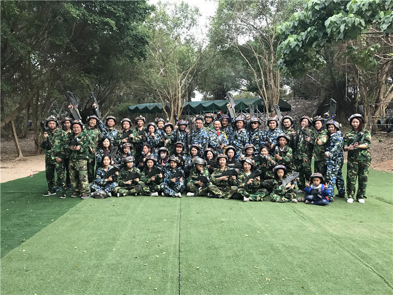 真人CS战后敌我两军防空洞前友好合影▼