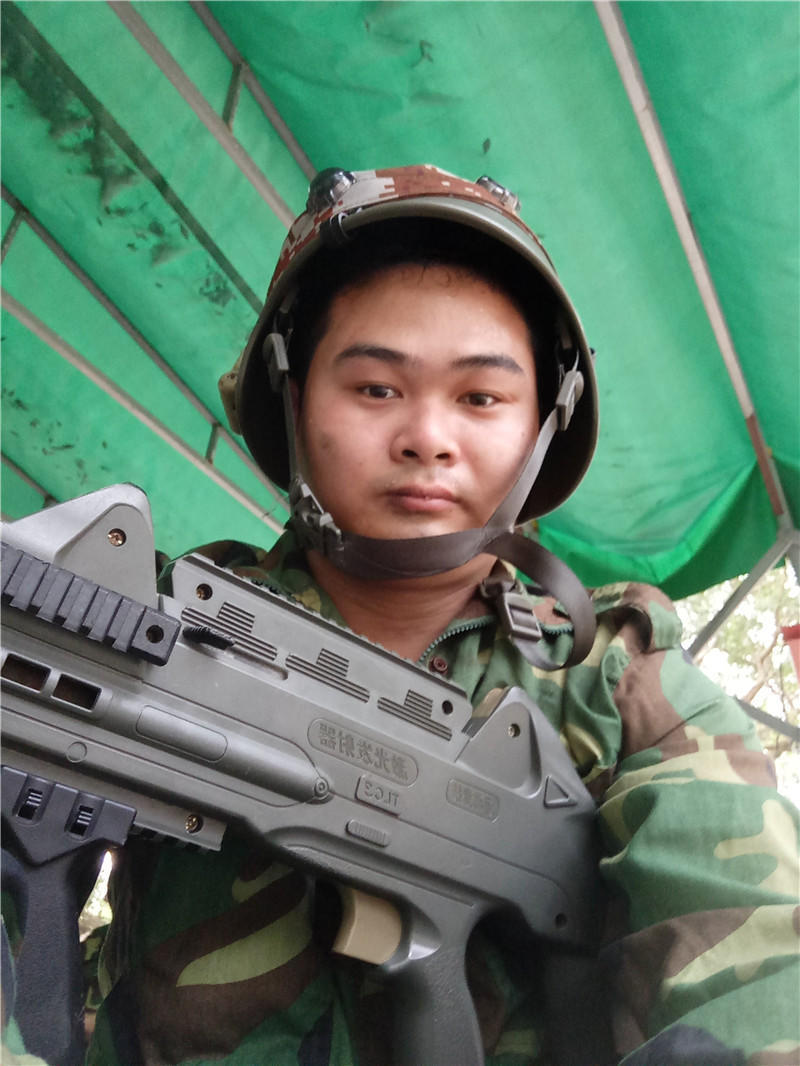 涟源市荷塘镇左湾村黄鹂芽茶基地负责人邹长福之子在真人CS战损区整装待发▼