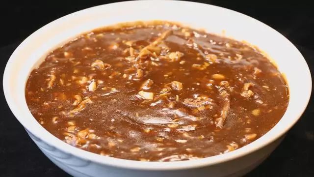 分次勾芡,芡汁儿依据个人口味大约勾至4~5次,至汤汁儿浓稠即可关火。