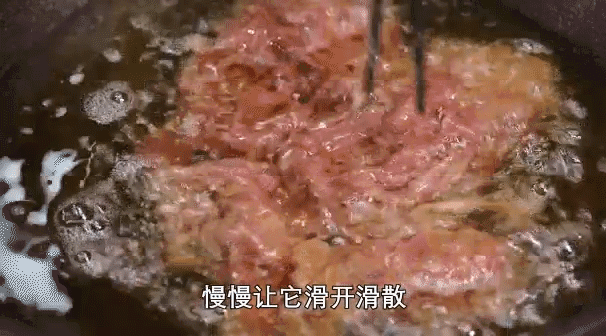 炸制:锅中留油,等油温烧制三成热即可;用筷子将肉丝匀着下进油锅中轻轻慢挑,等肉丝稍微快定形状时迅速调散30秒即可捞出。