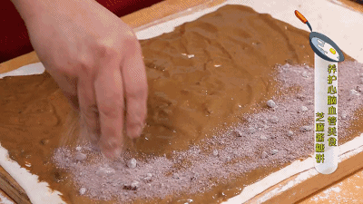 4、糖饼如何不流糖汁——抹完芝麻酱后再撒红糖,这样不容易化,好擀面饼。如果操作较慢,可以在红糖中加炒熟的面粉,增加黏性。