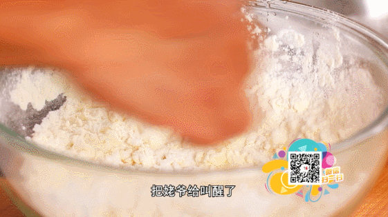 调制疙瘩:将洗净的瓶盖戳小洞装满清水。取一只大盆,加入适量的面粉。将水瓶倒立,随着细小的水流将面粉和成大小均匀的面疙瘩。