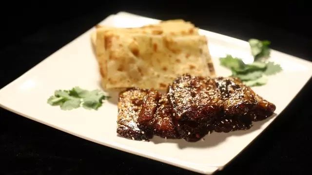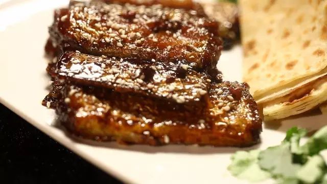 干豆皮卷着裹满酱汁的肉丝,搭配了清爽的黄瓜丝、香菜和葱段,豆皮儿一卷,便卷起了这老北京的独到风味,就两个字“地道”!