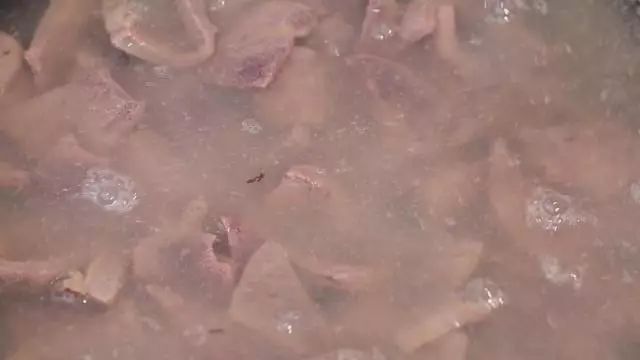 酱水煮开后先放入大肠,煮制5~7分钟。接着放入猪肝,煮制2分钟后关到最小火。