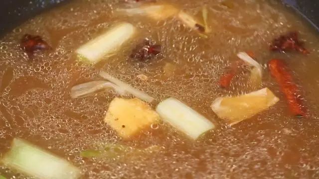 开火,锅中倒入底油,下葱姜蒜、大料开始煸香。