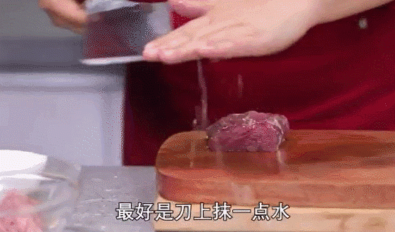 大厨窍门:切肉的时候最好在刀上抹一点水,让刀面稍微滑一点能更好地切出平滑的肉片。
