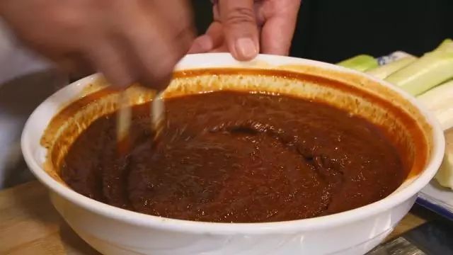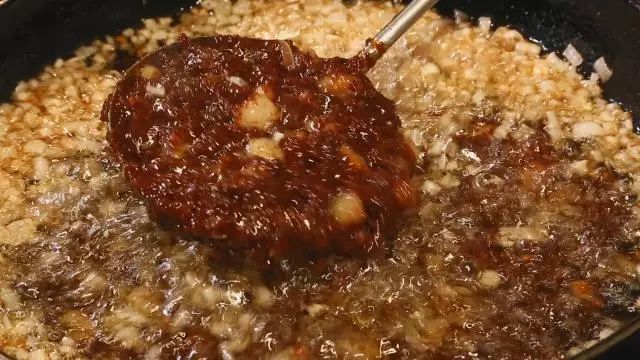 炒制:锅中放一半香油、一半炒菜油做底,添加姜酒水小火煸炒甜面酱;加点鸡精、盐、白糖把酱炒到拉黏状态。