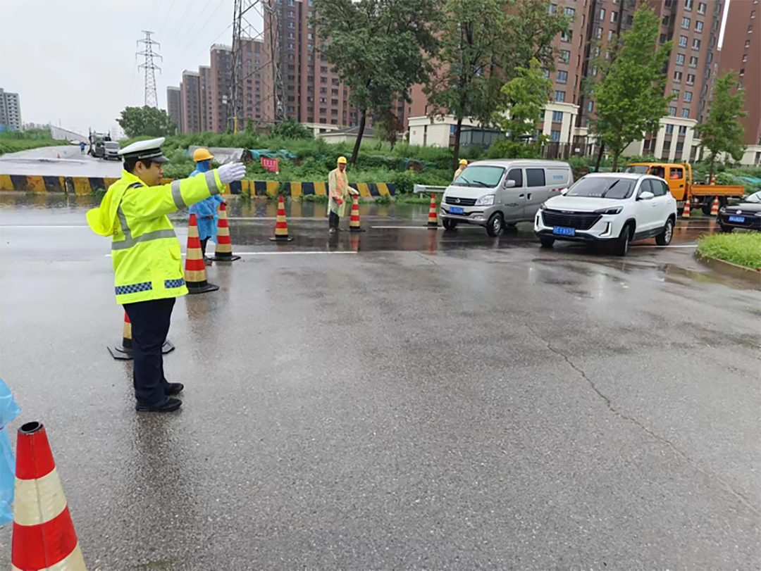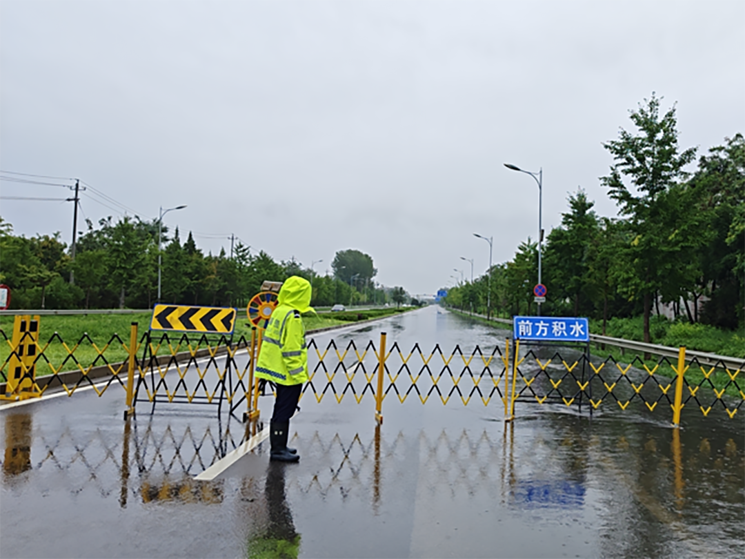 针对道路积水路段开展交通管制措施。
