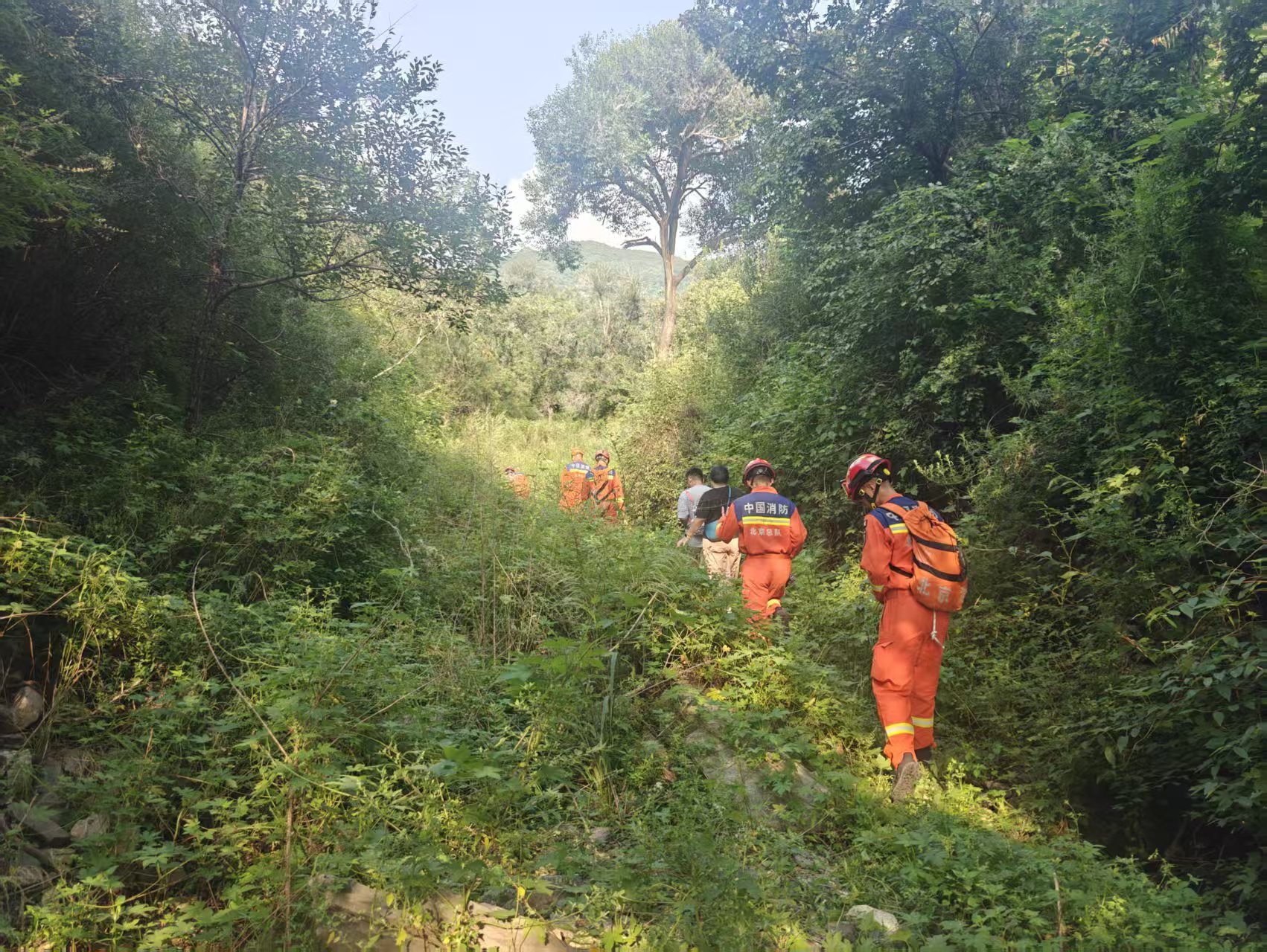 接警后,潭柘寺消防救援站迅速行动,于14时51分到达现场附近,明确了被困夫妻的具体位置。15时26分,消防救援站的6名指战员携带好绳索、钩子等救援工具,踏上了上山寻找迷路人员的征程。