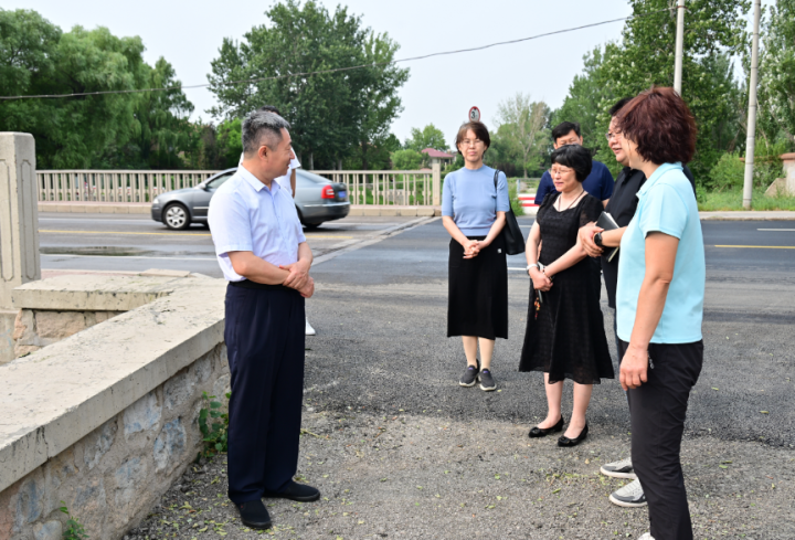 会前,代表们与承办单位负责人来到小汤山镇银街南路老官桥头,现场查看东侧路北路面硬化美化情况。