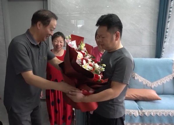 7月1日,江阴市见义勇为基金会来到王俊毅家中,为他们送上鲜花、证书和奖金。