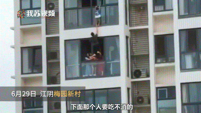 住在无锡江阴梅园新村某栋高层的王俊毅师傅,是一名网约车司机。6月29日下午5点不到,楼上的小孩不知怎么翻出了阳台,整个人悬挂在阳台外。