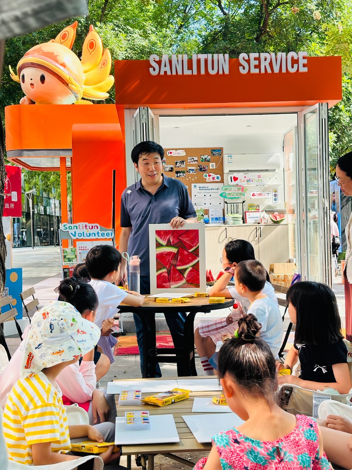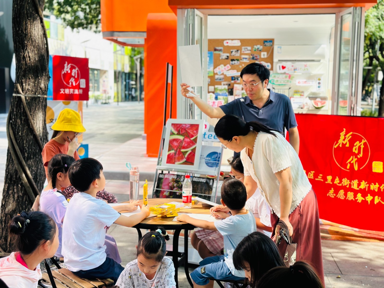 7月20日,由三里屯街道新时代文明实践所主办的“我是小画家”青少年实践活动在三里屯国际志愿服务小屋开展。活动邀请了三里屯国际青年人才创新榜单上榜青年、北京青年艺术发展促进会理事兼艺术教育专委会副主任杨乐担任老师,指导地区的12名青少年手绘西瓜,一起在艺术活动中“纳”清凉。