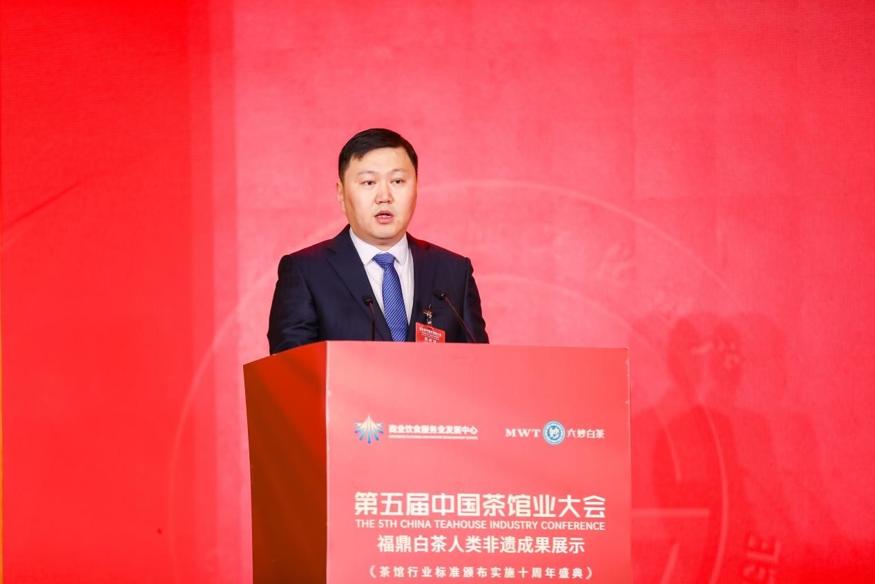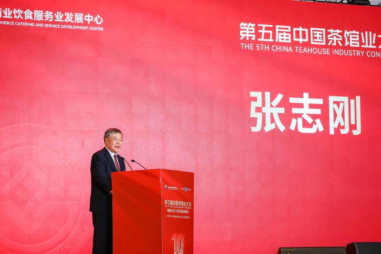 商业饮食服务业发展中心主任张艳彬致辞,他表示茶馆行业应遵循国务院发布的《关于促进服务消费高质量发展的意见》,通过创新服务消费场景、加强服务消费品牌培育、扩大服务业对外开放、加强服务消费监管、引导诚信合规经营、完善服务消费标准等支持举措进一步优化服务供给,为服务消费发展增添新动力。同时也相信通过大家的经验交流与智慧碰撞,一定能为茶馆行业的未来发展注入新动力,共同推动茶馆行业的明天更加美好。
