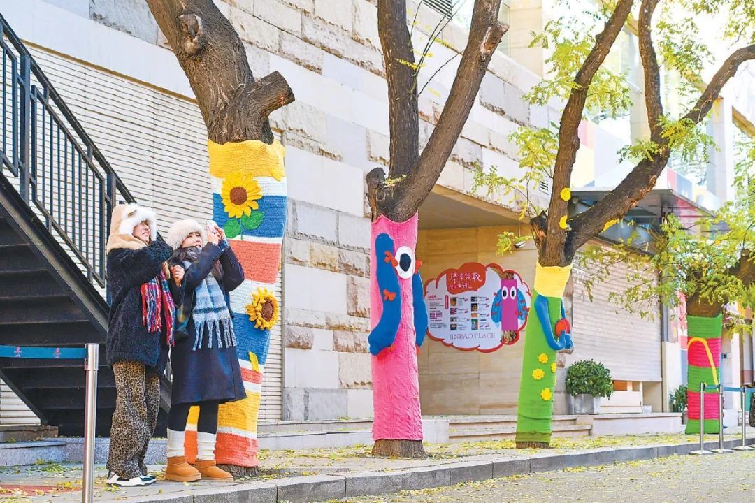 入冬以来,朝阳合生汇、中关村东升科技园等多地都有“毛衣树”上线,这些带着色彩的大树成为冬日里的一抹靓丽美景。