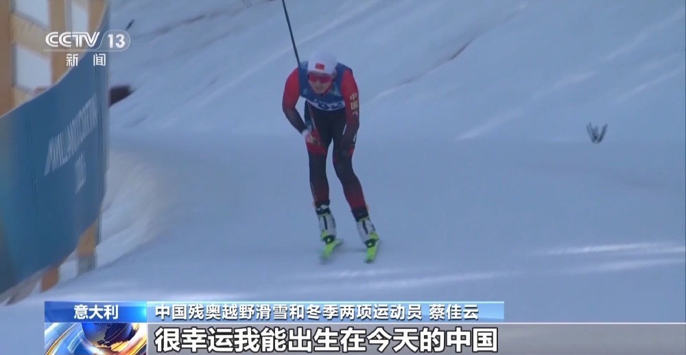 中国残奥越野滑雪和冬季两项队运动员 蔡佳云:是祖国给了我底气,很幸运我能出生在今天的中国,我获得的荣誉属于我的家乡,属于培养我的祖国,更属于每一位支持中国残疾人事业的人,我想告诉所有和我一样的朋友,身体的残缺从来不是枷锁,只要满心热血,心怀热爱,背靠祖国,我们就能在世界的舞台绽放光芒,让家乡的孩子知道大山里也能走出世界冠军。