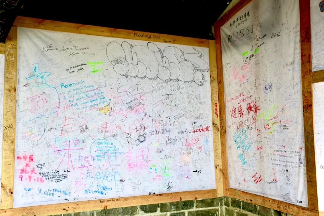 去涂鸦墙留下长城印记→保护长城、保护文物是我们每一个中国人都应根植于心的责任和义务。慕田峪长城5号、10号、北铺房(14号敌楼北侧)设置了3处“涂鸦墙”,以供游客留下自己的墨宝。游客可以在这里尽情书写,以最特别的方式,留下最难忘的记忆。