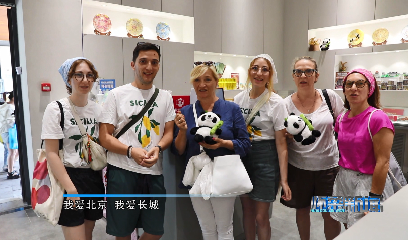 意大利游客:“长城很迷人,所以我想买一个礼物,因为这个包真的很漂亮,我爱北京,我爱长城。”