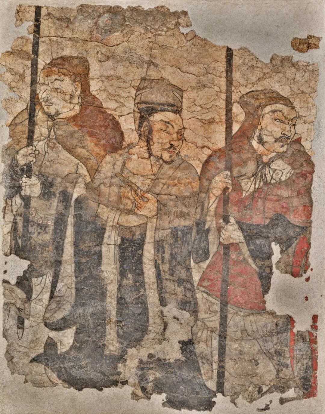 平时难得一见的磁县湾漳大墓壁画原件,这次可以一下看到10块之多,是目前已经发现的北朝壁画墓中绘制水平最高、规模最宏大的一处↓。有懂行的网友戏称,河北省文物局为了践行“这么近那么美,周末到河北”,也是花了血本了!