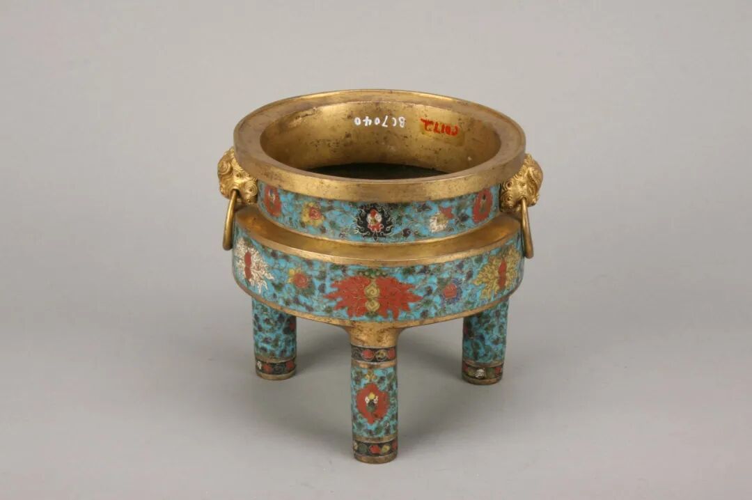 铜胎掐丝珐琅缠枝莲纹三足炉 清