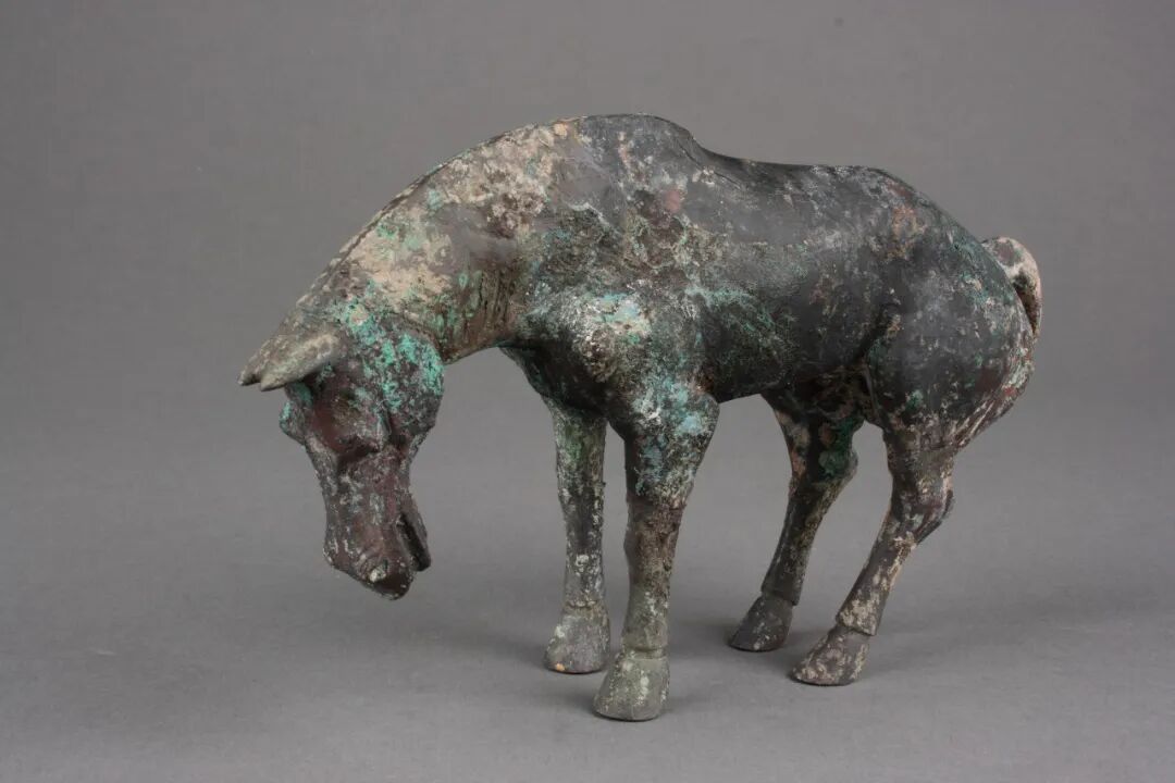 比著名的铜奔马还早几百年的战国低头青铜马,据说是在低头吃草,看起来有点“丧丧”的样子,是不是跟年初意外走红的义乌“哭哭马”有点异曲同工?